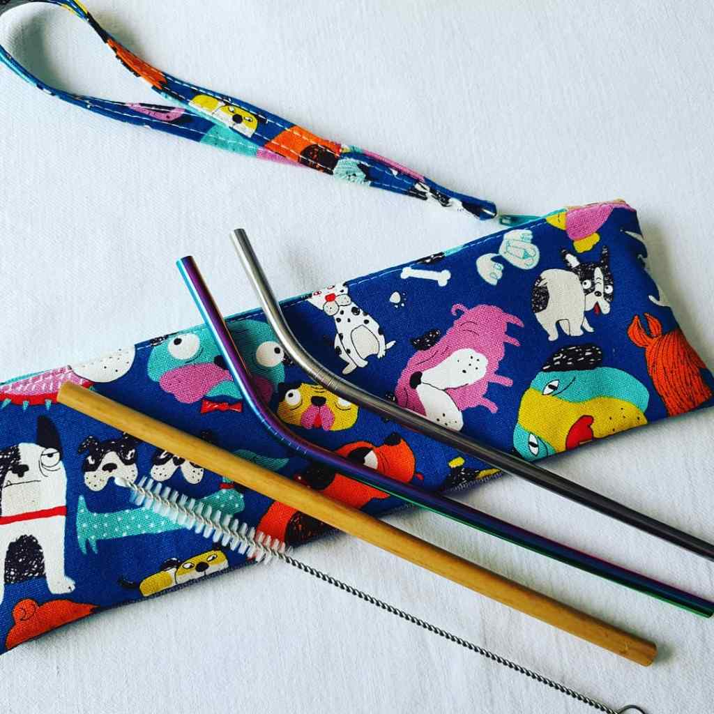 Eco friendly reusable metal or bamboo straw sets with zipper pouch
