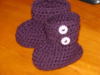 And I have also been coming up with my own crochet patterns for girl’s beanies/boots and boy’s beanies/shoes: