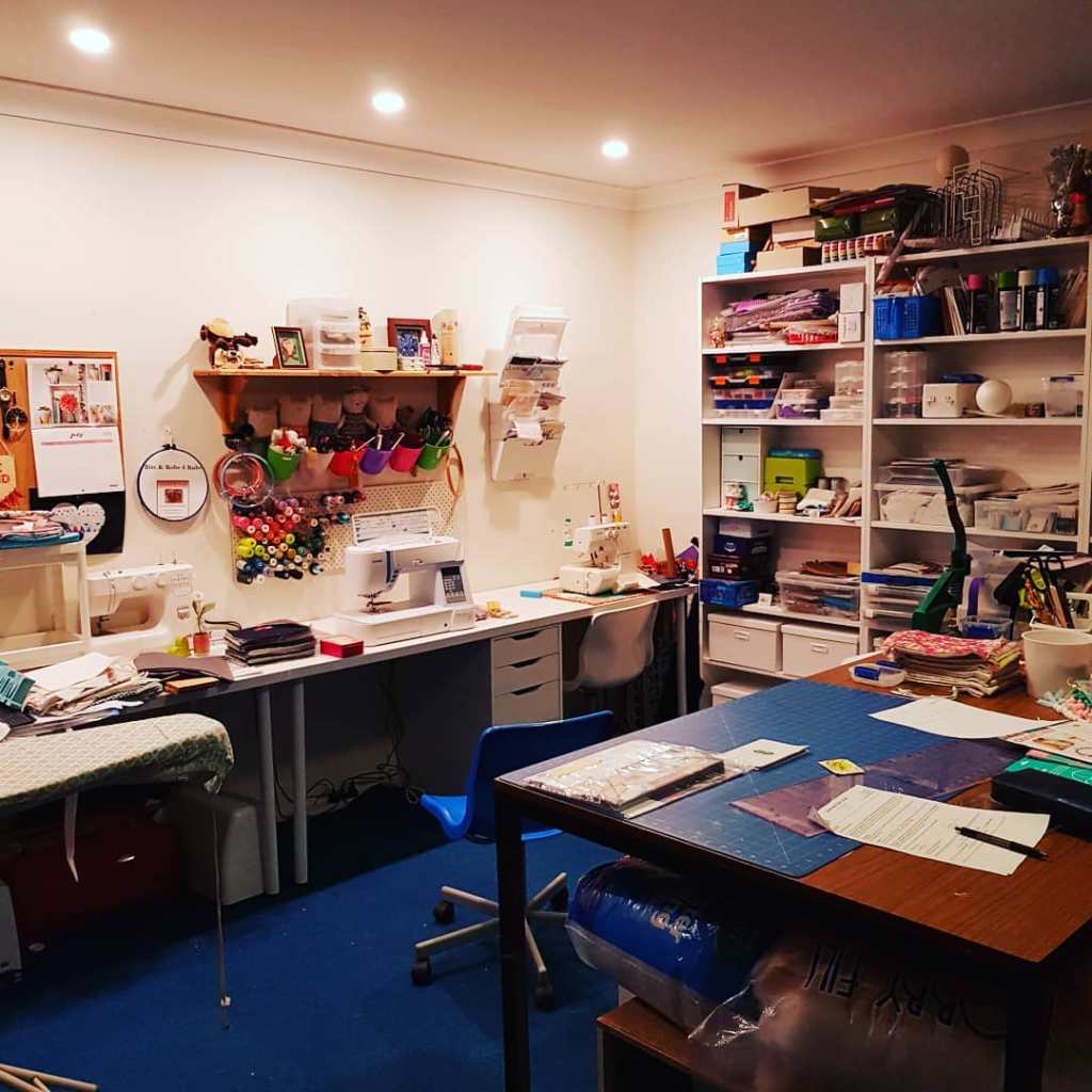 Our dinner table began as my first sewing area and then progressed to our garage which in winter was absolutely freezing and in summer I had to have the garage door opened all the way up to let the breeze in. Three years ago we finally made the decision to convert the garage into a study/sewing studio.